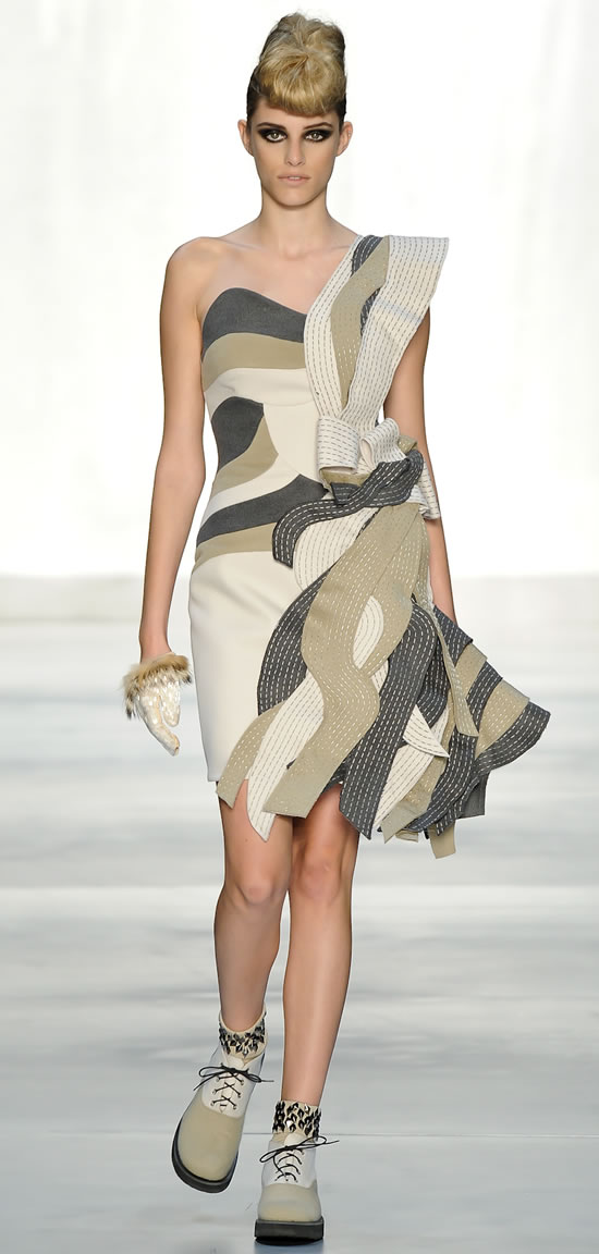 A beautifully made collection in grey, black and white. I love the embelishments used here, a lot of beads, net, transparency and draping on this collection, which is right up my street. Ohhh and the shoes are amazing, I would love to have a pair too.